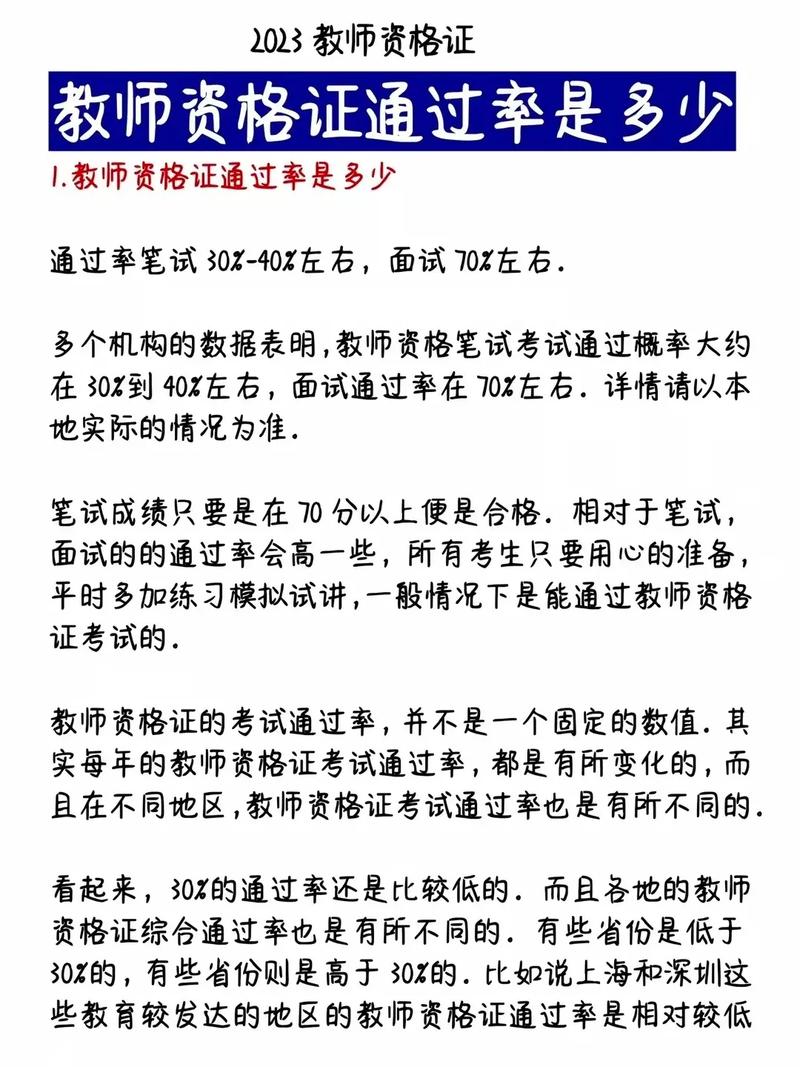 需要注意的是,教师资格考试的难度和通过率可能会受到多种因素的影响,包括考试内容的难度、考生的准备情况、考试政策的调整等。考生在备考时应以最新的考试大纲和官方发布的信息为准,做好充分的准备。