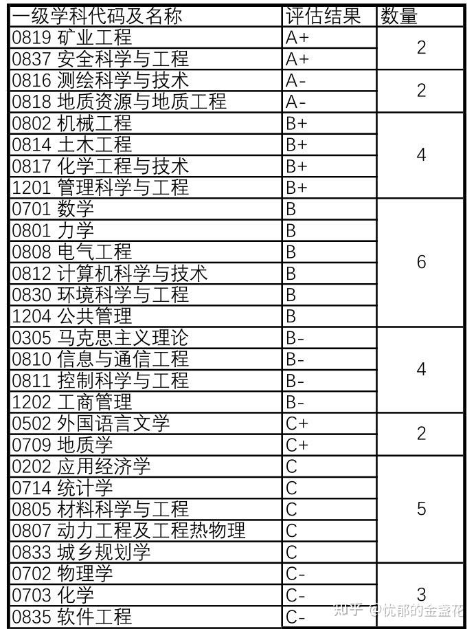 1. A+类学科:矿业工程、安全科学与工程(共2个)。