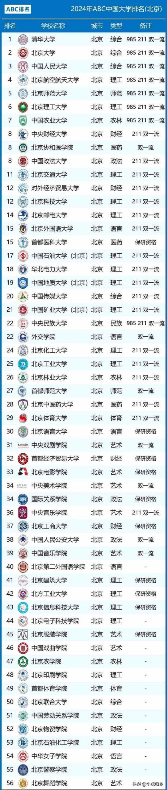 1. 清华大学:位于北京,综合类大学,排名第一 。