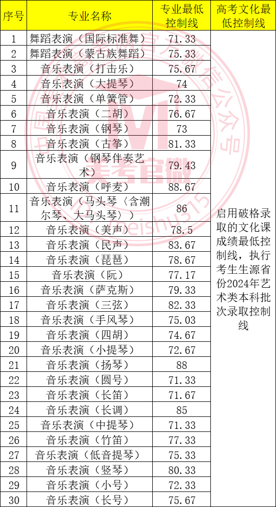 – 2024年内蒙古艺术学院的各专业录取分数线也有所公布,具体分数线包括: