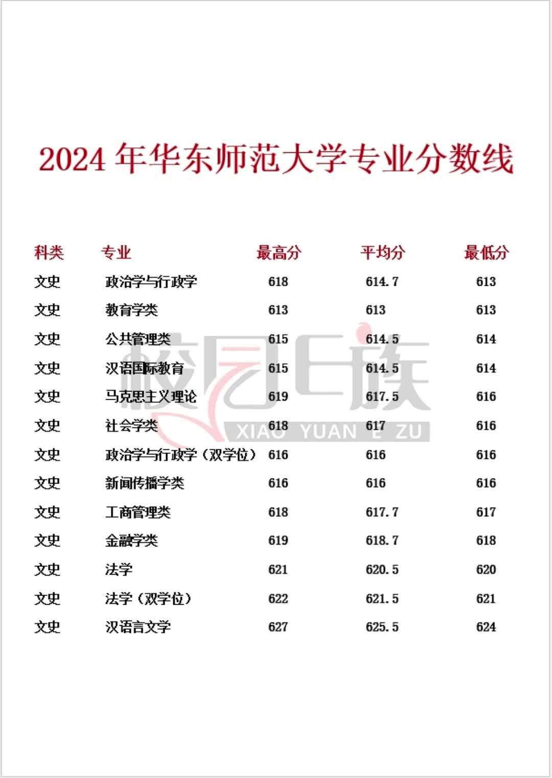 华东师范大学在2024年开设了多个专业,以下是一些主要专业的最低录取分数: