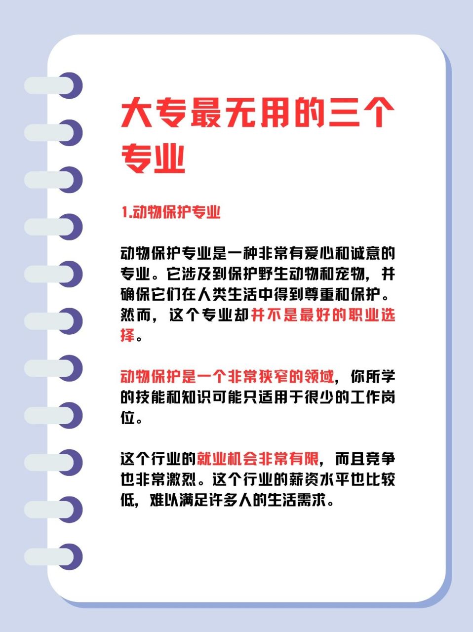 2. 个人兴趣和发展方向:选择专业时,应该结合个人兴趣和职业发展方向,而不是简单地认为某些专业“无用”。