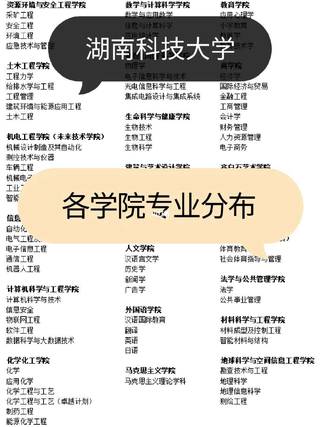 这些专业覆盖了湖南科技大学的主要学科领域,为学生提供了广泛的学习选择。