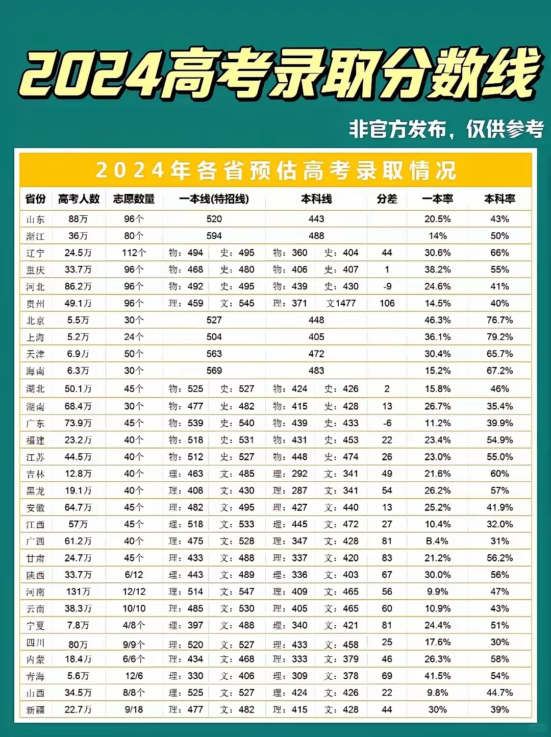 请注意,这些预估分数仅供参考,具体的分数线还需等待官方公布。不同省份的高考政策和录取批次存在差异,因此一本分数线也会有所不同。