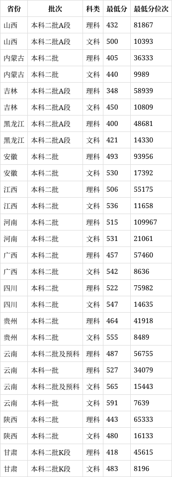– 文科本科二批及预科最低录取分数线为526分。