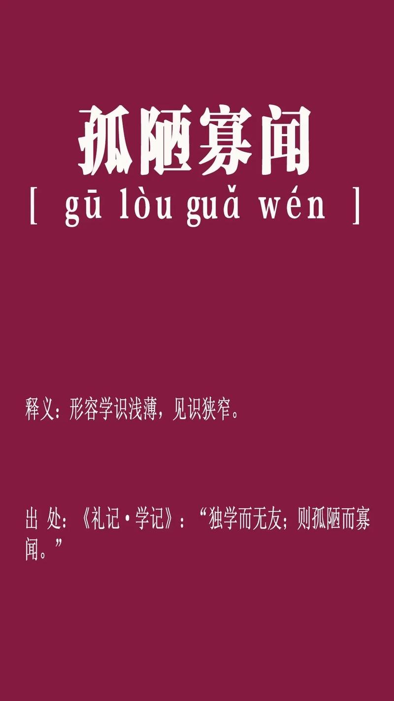 【成语来源】:西汉·戴圣《礼记·学记》:“独学而无友,则孤陋而寡闻。”