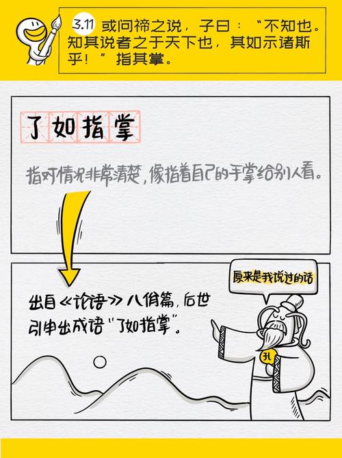 【成语来源】:出自《论语·八佾》:“或问褅之说。子曰:‘子知也;知其说者之于天下也,其如示诸斯乎!’指其掌。”