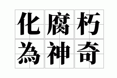 【成语意思】:化腐朽为神奇:将腐朽的事物转变为神奇的东西,形容通过改造使无用的东西变得有用,或将平凡的事物变得非凡。