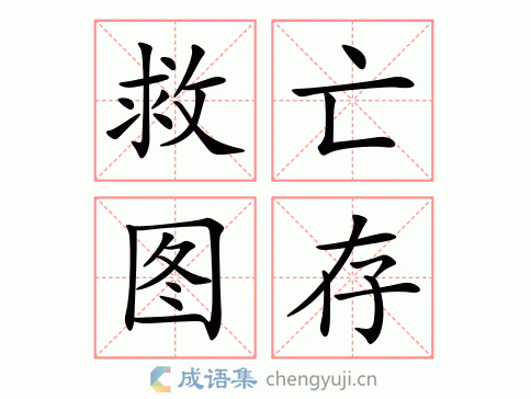 【成语意思】:救亡图存:拯救国家的危亡,谋求国家的生存。