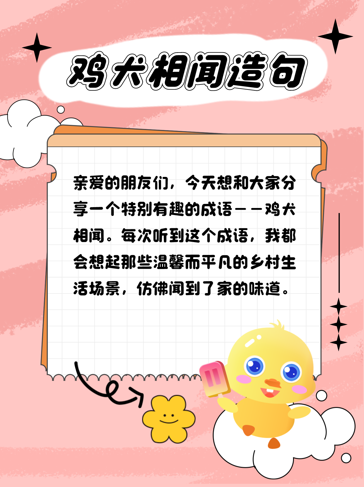 【成语意思】:鸡犬相闻:指鸡鸣狗吠的声音都能听到,形容人烟稠密,邻近的居住环境。